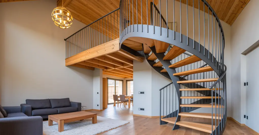 Pensez aussi à l’usage quotidien. Un escalier colimaçon reste idéal pour accéder à une mezzanine, un bureau ou une chambre secondaire. Pour un passage intensif, privilégiez des marches antidérapantes et une main courante continue, surtout dans les logements familiaux.